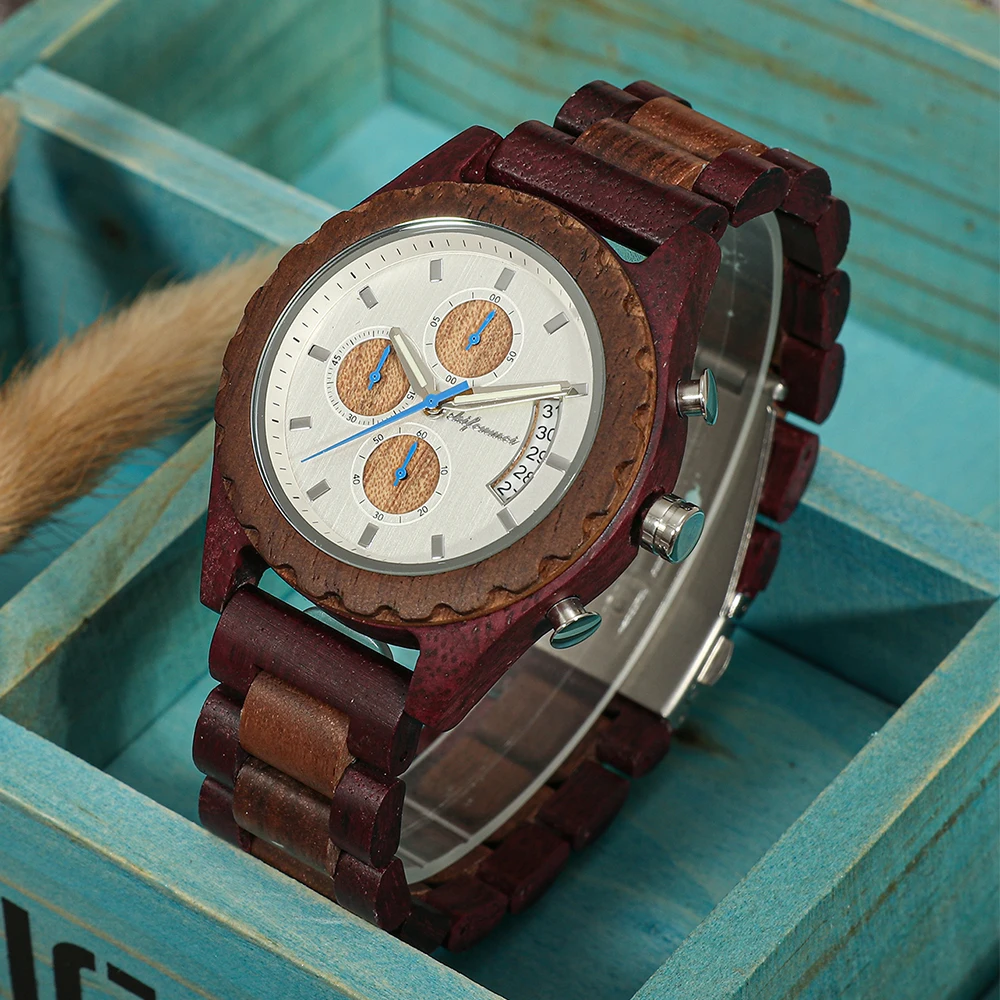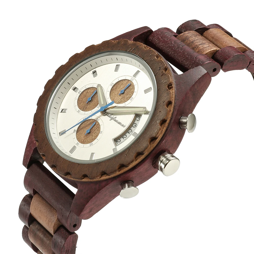 SHIFENMEI Three-eye Wooden Business Men's Watches Sports Quartz Watches for Vigilia Holiday Anniver