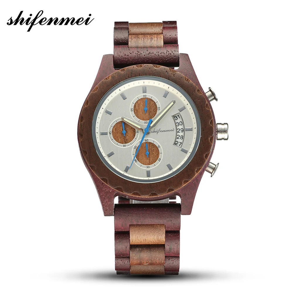 BEST QUALITY SHIFENMEI Three-eye Wooden Business Men's Watches Sports Quartz Watches for Vigilia Holiday Anniver
